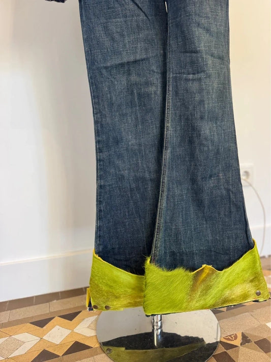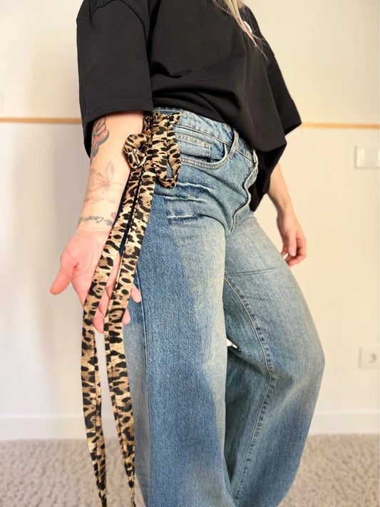 Custom animal print double denim trousers