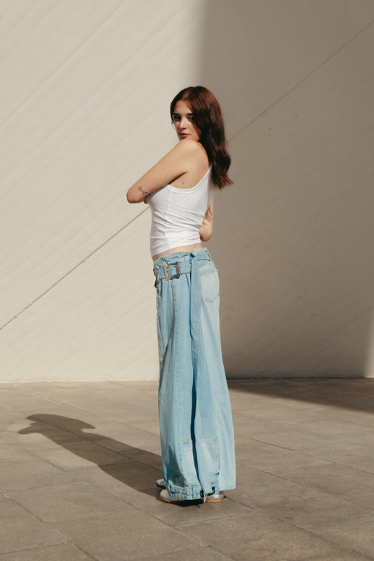 Light Blue Double Buckle Pants